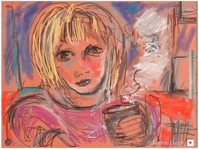 Another drawing from my preinstalled note app on my iPad air 2. *Now using an iPad Pro 10.5.Love this simple, fun app called “Drawing Pad”. A fun naturalistic drawer to pull out and choose media from – and the media is great!Another quick sketch in the “Drawing Pad” app.Charcoal and paint in the “Art Set Pro” app.I began this in “Art Rage” and to smooth it over I used a smudge tool in the “Art Set Pro” app. Pity there doesn’t seem to be these tools in “Art Rage”, yet it is still an excellent art app.