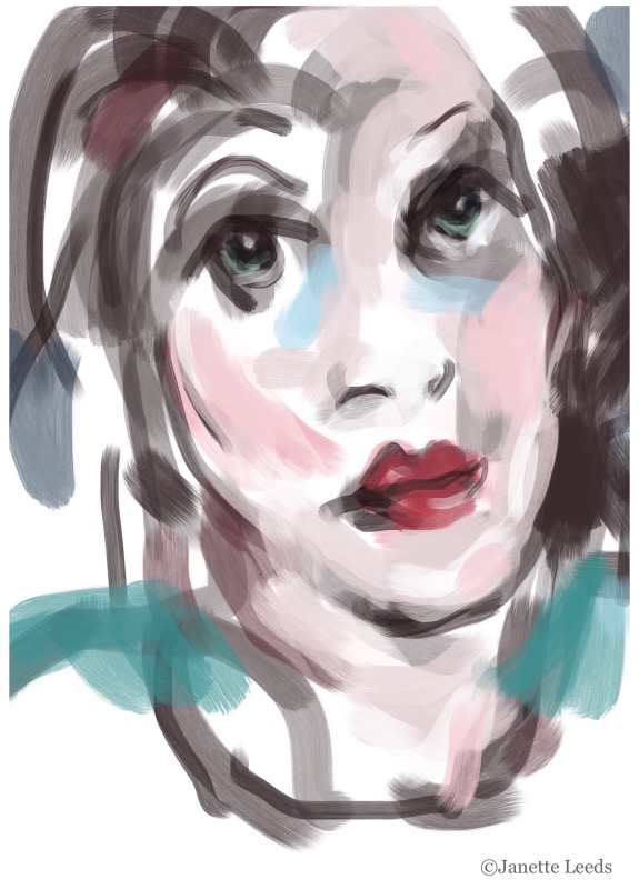 Rough underpainting of a woman’s face