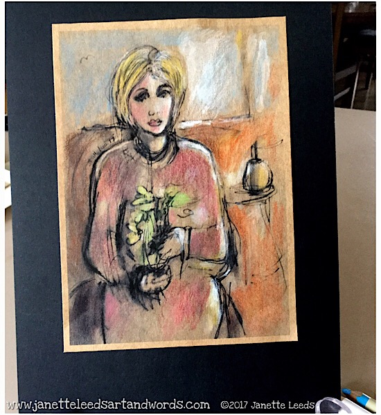 Drawn in charcoal and white conte pastel, on a tan weaved surface, in the “Art Set Pro’ app. Then put some watercolour on the print.