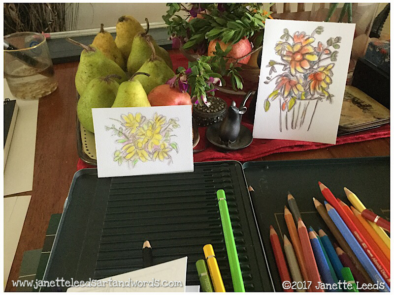 Photo of pencils and two watercolours