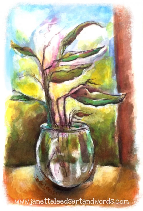Hi, I’m back from my annual Summer blogging break. When I left I was beginning to use more of my traditional art media. After an intensive time (I’m not one to do things by half measures) with iPad art in these past few years, it was a bit strange to be dipping brushes into water, and squeezing paint tubes, not too many tubes though – except for acrylics, as I still prefer using watercolour pan sets: Winsor and Newton, Sennelier, and love my pan set of Caran D’Ache gouache colours… I had some dips into art app media as well. Really thankful† for all my choices!