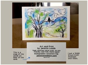 I like to see my art on practical items, and choose some particularly for this purpose. I place the designs on products in my Red Bubble shop. It’s easy and fun to do; and I can also order some for my own use, and personalised gifts.