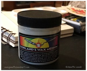 The brand I used is called Dorland’s, apparently there’s also a cold wax made by Gamblin. I don’t use a fixative first, (though others do) and have no problems.