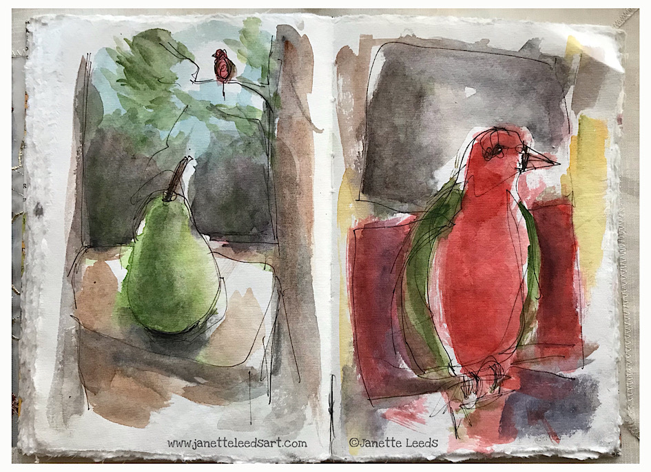 The following collection of works are mainly in: ink pen, coloured pencil and watercolour… some in sketchbooks, and others on various types of paper. They are selected from my sketches I did in the past few months. I draw and paint most days, and sorting through them every so often, helps me see where I’ve been, and where I may go with my art.