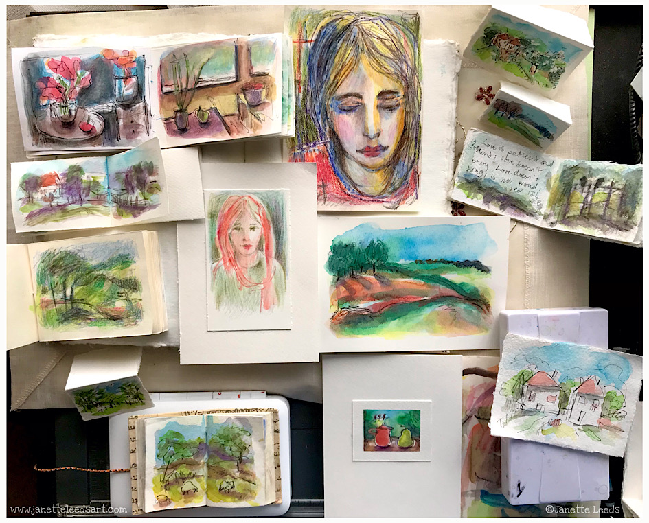 However, even in a small space, there’s often a lot of mark making and note writing, before polishing either an image or words into a coherent (hopefully) finished piece – plenty of room to express something from the heart and mind, (whether anyone sees it or not). As for the type of writing I do on my blog, I can go on… a bit!