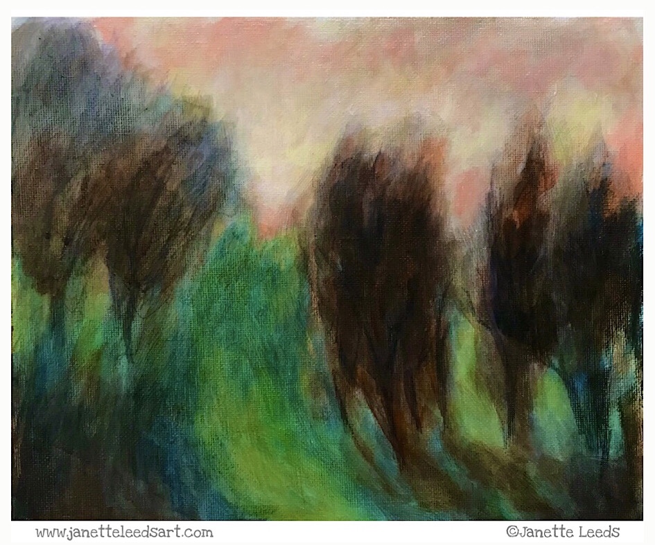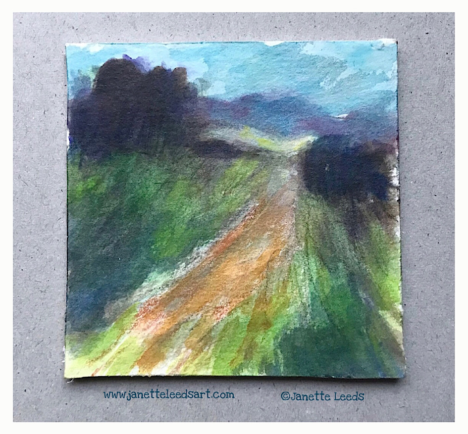 *Gouache, watercolour, graphite pencil, Inktense ink washes… and layers of clear matte and gloss acrylic mediums on a 8” x 10” (approx. 20cm x 25cm) canvas board.